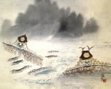 19世紀半ば以降、日本画にも「西欧化」の波が押し寄せ、特に風景画に顕著にみられる「西洋的写実」の技法は円山・四条派の作風に大きな影響を与えました。遠近法を取り入れた表現方法に対して、近代京都画壇の画家たちは独自のスタイルを模索し、新たな日本画表現を切り開いていきます。 本展では近代京都画壇を代表する竹内栖鳳をはじめ、中国の古典や風物を題材とした作品や動物画を数多く描いた橋本関雪の作品など、計17点をご紹介いたします。さらに、近年再評価が進む不染鉄の代表作「山海図絵」も併せて展示いたします。